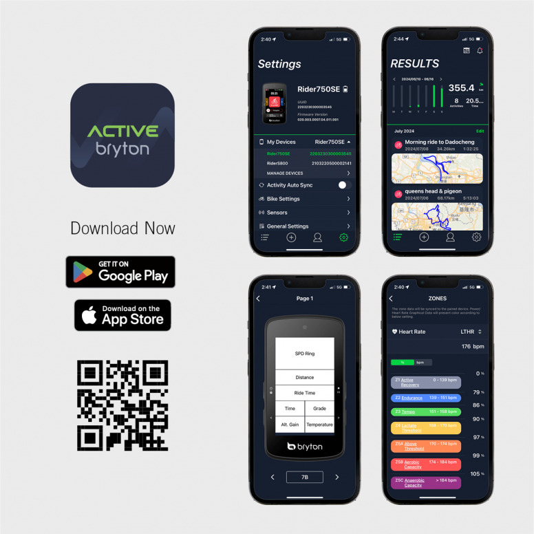 BRYTON ACTIVE APP SUPPORT: Using the Bryton Active app, you can choose cycling routes, invite friends, and track the status of all ride members in realtime. Each riderâ€TMs current location will be displayed on the map, allowing you to stay updated on the teamâ€TMs progress at all times.