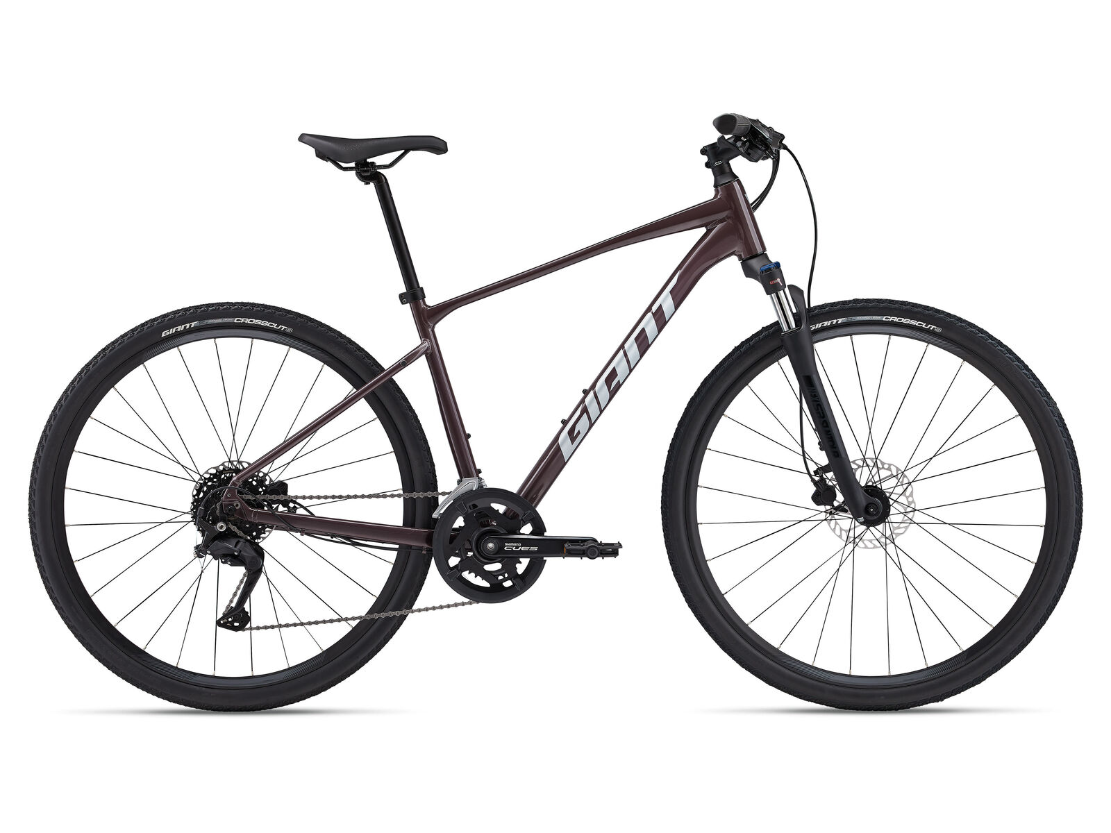 | Style | With its flat handlebar, comfortable upright positioning and smooth, powerful disc brakes, Roam combines the best qualities of a road bike and a mountain bike. Now you can follow your own route wherever it goes.ALUXX Aluminium Technology - This Performance level frame material features 6061 alloy with single-butted tubes to produce strong, lightweight framesets for a variety of different bikes and riding styles. D-Fuse Seatpost - The proprietary " D" shaped composite seatpost damps vibration, resulting in a smooth, compliant ride. Specifications:Sizes S, M, L, XLColours Gloss Charcoal Plum/Silver Frame ALUXX-grade aluminium, disc Fork SR Suntour NEX HLO 700C, 63mm Shock Handlebar Giant Sport XC, 31.8mm Grips ErgoContact Stem Giant Sport, 8-degree Seatpost Giant D-Fuse, alloy, 350mm Saddle ErgoContact Pedals Platform pedals Shifters Shimano CUES U4000, 2x9 Front Derailleur Shimano CUES U4000 Rear Derailleur Shimano RDU3020 Brakes Tektro TKD-143 hydraulic, [F]160mm, [R]160mm rotors Brake Levers Tektro TKD-143 Cassette Shimano CS-LG3009, 11x36 Chain Shimano CN-LG500 Crankset Forged alloy, 30/46 Bottom Bracket Cartridge Rims Giant double wall aluminium Hubs alloy, 28h Spokes Stainless steel Tyres Giant CrossCut, anti-puncture, 700x42c Extras 53mm max tyre size |