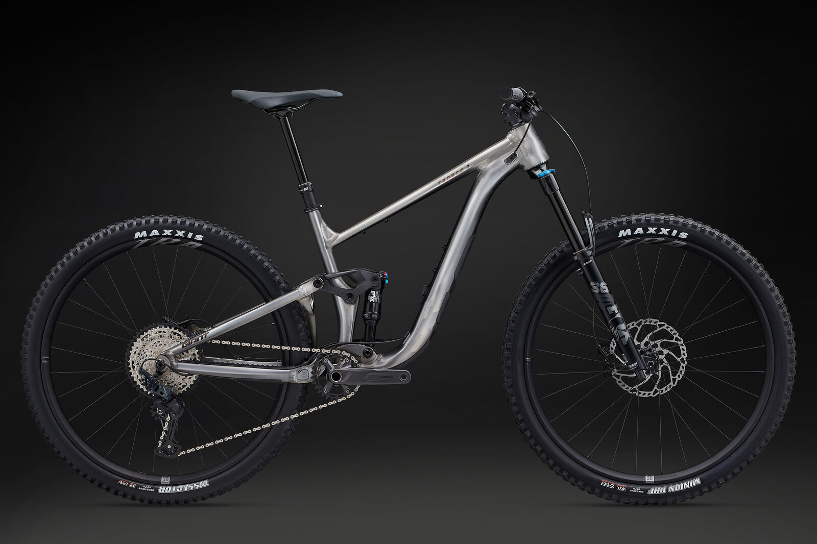 | Style | Find your flow on technical trails. With adjustable geometry, the option to change rear wheel size, and a new 140mm Maestro rear suspension setup, this versatile trail bike steamrolls singletrack with confidence and control.Advanced Forged Composite Technology - A state-of-the-art high-pressure moulding process is used to produce complex-shaped carbon fibre components that are lighter, stiffer and stronger than similar components made from aluminium. This technology is used in critical performance parts such as Maestro Suspension rocker links. ALUXX SL Aluminium Technology - This High-Performance level, state-of-the-art aluminium material is made predominantly from 6011 alloy and delivers best-in-class strength-to-weight ratios. These framesets also feature unique welding technologies for high-performance ride quality. Maestro Suspension Technology - Four strategically positioned pivot points and two linkages all work together to create a single floating pivot for the most active, efficient and independent suspension system on the trail. OverDrive - Giant's original oversized fork steerer tube technology. Designed to provide precise front-end steering performance, the system's oversized headset bearings (1 1/4" lower and 1 1/8" upper for road, 1 1/2" lower and 1 1/8" upper for mountain) and tapered steerer tube work in conjunction to provide optimal steering stiffness. Tubeless System - Fewer flat tires. Greater traction. Less rolling resistance and a smoother, faster ride. Giant's Tubeless System makes it easier than ever to experience all these benefits. Flip Chip - Maestro - The flip chip allows riders to quickly adjust the geometry of their Maestro-equipped mountain bike to better suit how and where they ride. It lets riders change the headtube/seattube angles and bottom bracket height via eccentric (offset, two-position) hardware located on the upper rocker arm. Specifications:Sizes S, M, L, XLColours Smoke Metal/Chrome Frame ALUXX SL-grade aluminium front and rear triangles, 140mm Maestro suspension, flip chip - Maestro 3, flip chip - headset, 12x148mm thru-axle Fork Fox 36 Float Performance, GRIP damper, 44mm offset, 150mm, 15x110 Kabolt, custom tuned for Giant Shock Fox Float Performance, 185/52.5, custom tuned for Giant Handlebar Giant Contact TR35, 780x35mm, 20mm rise Grips Giant Tactal Pro Single S:120mm, M:120mm, L:130mm, XL:130mm Stem Giant Contact SL 35 S:40mm, M:40mm, L:50mm, XL:50mm Seatpost Giant Contact Switch Adjustable, remote S: 110-140mm travel / 30.9 x 395mm M: 140-170mm travel / 30.9 x 470mm L: 170-200mm travel / 30.9 x 530mm XL: 170-200mm travel / 30.9 x 530mm Saddle Giant Romero Pedals PEDALS NOT SUPPLIED Shifters Shimano SLX SL-M7100, 1x12 Front Derailleur Rear Derailleur Shimano SLX RD-M7100 Brakes Shimano Deore BR-MT520, hydraulic, Shimano RT-66 rotors [F]203mm, [R]180mm Brake Levers Shimano Deore BL-MT501 Cassette Shimano SLX, 10x51 Chain KMC X-12 Crankset Shimano M512, 30t, 55mm chainline Bottom Bracket Shimano Press Fit Rims Giant TRA, 29" hookless aluxx wheelsystem, 30mm IW, 40mm OW, 21mm H,72t POE, 28 SP spokes, DBL technology, MS driver body Hubs [F] Giant MTB alloy, six-bolt [R] Giant MTB alloy, 72t POE (Points of Engagement), six-bolt, MicroSpline driver body Spokes Sapim, 28, straight pull, DBL Technology Tyres [F] Maxxis Minion DHF, 29x2.5 WT, 60 tpi, EXO, TR [R] Maxxis Dissector 29x2.4 WT, 60 tpi, EXO TR, tubeless Extras Factory tubeless set up, 2.5" max tyre size, 34t max chainring size |