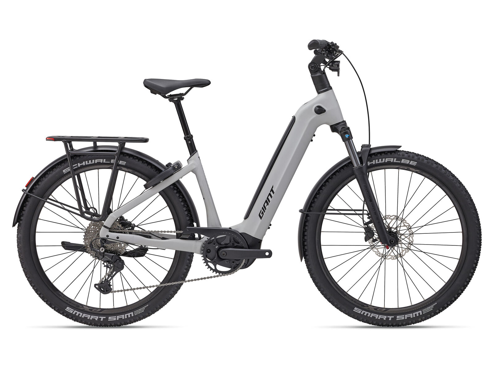 | Style | Built for riders who don't stop when the pavement ends, the AnyTour X E+ delivers premium comfort and confident control across changing terrain. It blends everyday ease with true trekking capability, making it feel steady and effortless to ride as surfaces shift from city streets to gravel and light trails.Aegis E-Lock - The E-Lock disables motor support and digitally locks the bike via app, remote, or PIN. If moved without authorization, an audible alarm sounds instantly, ensuring peace of mind and real protection every time you stop. E+ System - E+ System combines electric power with human power to produce a smart, natural and powerful E-bike riding experience. It's an integrated group of technologies that includes our RideControl control units, EnergyPak battery systems and SyncDrive motors. For more information, check out the link below. Energypak - Giant's latest EnergyPak battery systems feature streamlined designs that are integrated with the E-bike for a sleek and modern profile. Giant E-bikes offer several different EnergyPak options including the EnergyPak Smart and EnergyPak. Each one is designed to optimize the E-bike experience for a specific style of riding. Find My Bike - Enhanced security and anti-theft feature using Apple Find My function lets you set up separation alerts, locate your E-bike remotely, and receive notifications if its location changes. Apple Find My privacy protections ensure that your location information is encrypted on Apple servers and retained for only 24 hours. ALUXX SL Aluminium Technology - This High-Performance level, state-of-the-art aluminium material is made predominantly from 6011 alloy and delivers best-in-class strength-to-weight ratios. These framesets also feature unique welding technologies for high-performance ride quality. RideControl Ergo 4 - The new RideControl Ergo 4 builds on the previous generation Ergo 3 with a sleek, grip-integrated 3-button remote control unit. It blends seamlessly with your handlebar and grips and has a larger, more concave shape and improved tactile feedback. RideDash Evo - The RideDash EVO is completely revised for 2021. It has a sportier outlook with a full-color display and graphics showing new functionalities to enhance the E-bike riding experience. It has handlebar/stem integration options and a reliable, wired connection. The low-profile screen shows ride information including speed, distance, battery range and Navigation, heart rate and fitness require the app to be connected. Smart Assist - All SyncDrive motors have Smart Assist technology, which adjusts the support to match the rider's needs. By using information from multiple sensors, both rider input and terrain feedback are used to determine the optimal amount of pedaling assistance. SyncDrive is the only e-bike system that utilizes both rider input and terrain feedback. It gives you a smooth, natural riding experience with ample power when you need it, while also conserving power when you don't need as much. SyncDrive Sport 3 - The SyncDrive Sport 3 motor delivers 85 Nm of torque with smooth, responsive output that stays controlled as surfaces become more demanding. Its quiet performance and compact design support confident riding across mixed terrain. |