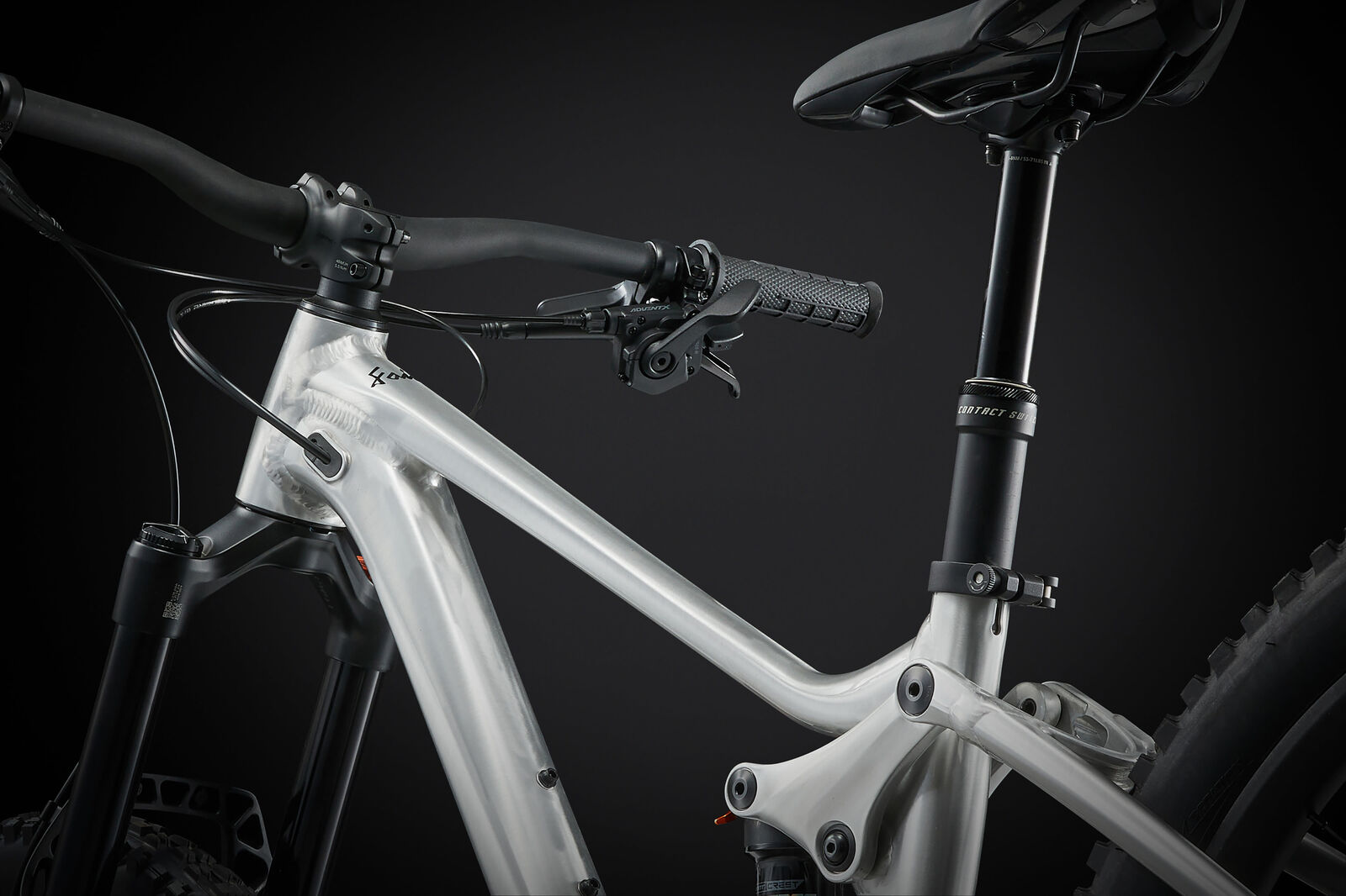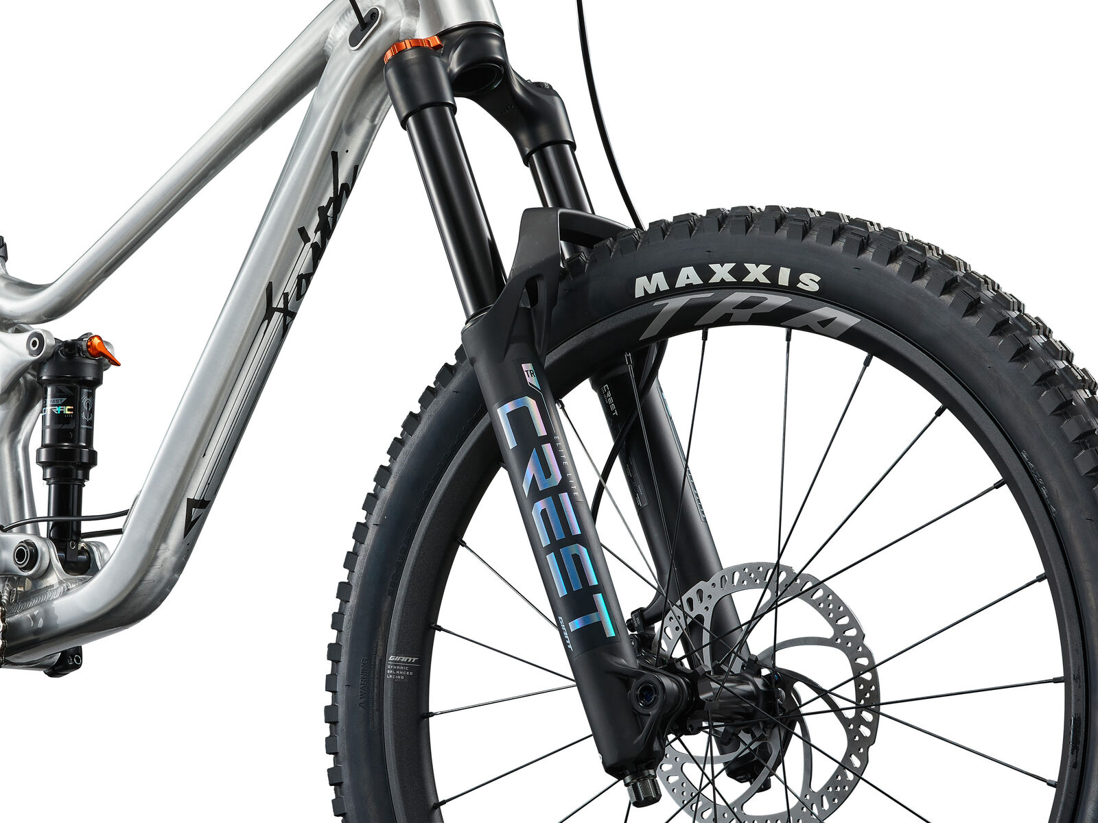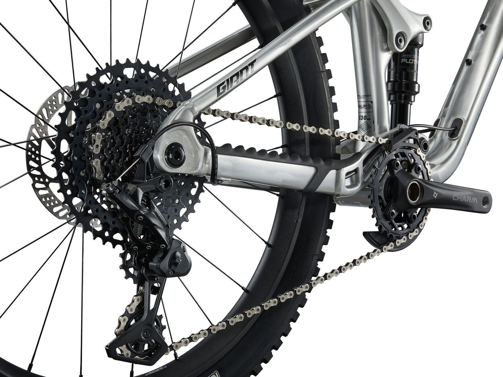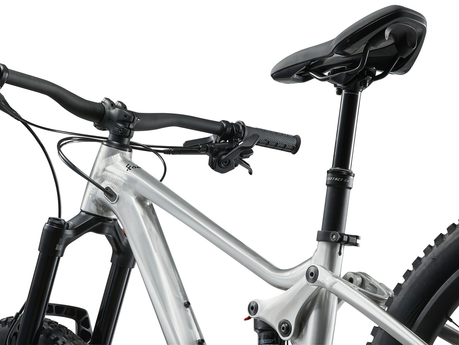 | Style | Small but mighty, this highly capable new trail bike is made for little rippers with big ambitions. With a lightweight alloy frame, 24-inch wheels, and youth-tuned suspension, it balances efficient climbing, loads of traction, and confident handling to help young riders take it to the next level.ALUXX SL Aluminium Technology - This High-Performance level, state-of-the-art aluminium material is made predominantly from 6011 alloy and delivers best-in-class strength-to-weight ratios. These framesets also feature unique welding technologies for high-performance ride quality. FlexPoint Suspension Technology - A proven “single-pivot” design that uses the flexing action of the chainstay/seatstay junction to produce a lightweight and durable suspension system with 4.7 inches/120mm of rear travel. OverDrive - Giant's original oversized fork steerer tube technology. Designed to provide precise front-end steering performance, the system's oversized headset bearings (1 1/4" lower and 1 1/8" upper for road, 1 1/2" lower and 1 1/8" upper for mountain) and tapered steerer tube work in conjunction to provide optimal steering stiffness. Tubeless System - Fewer flat tires. Greater traction. Less rolling resistance and a smoother, faster ride. Giant's Tubeless System makes it easier than ever to experience all these benefits. Specifications:Sizes One SizeColours Raw Aluminium Frame ALUXX SL-Grade Aluminium front and rear triangles, 12x148mm thru-axle, 130mm FlexPoint suspension Fork Crest TR Elite Lite, FloTune Lite Damper, 140mm Shock Crest FloTrac Lite, 165/45mm, trunnion mount Handlebar Giant Contact TR, 20mm rise, AL6061 aluminium, 680mm Grips Giant small-hand Stem Giant Contact, 8 degrees, 40mm Seatpost Contact Switch AT Lite, 100mm Saddle Selle Royal Vivo Jr Pedals Giant Pinner Lite Shifters MicroSHIFT Advent X Trail trigger shifter SL-M9505-R (with nanowire) Front Derailleur Rear Derailleur Microshift Advent X RD-M6205AM Brakes Tektro [F]180mm, [R]160mm Brake Levers Tektro HD-J285 Cassette Microshift Advent X G-Series 10-speed, 11x48 Chain KMC X10 with missing link Crankset ProWheel Charm, 30t, 140mm Bottom Bracket Press Fit Rims Giant TRA WheelSystem, alloy, hollow rim wall construction, hookless, 30mm inner width, 40mm outer width, 21mm height, Wide Guard Technology [F] 24" [R] 24" Hubs [F] Giant alloy, DBL, six-bolt [R] TRA HE, DBL, 72t pawl driver, 6 bolt Spokes Sapim Laser Tyres [F] Maxxis Minion DHF, 24x2.5, 60 TPI, folding,[R] Maxxis Minion DHR II, 24x2.4, 60 TPI, folding Extras Giant 1x chain guide |