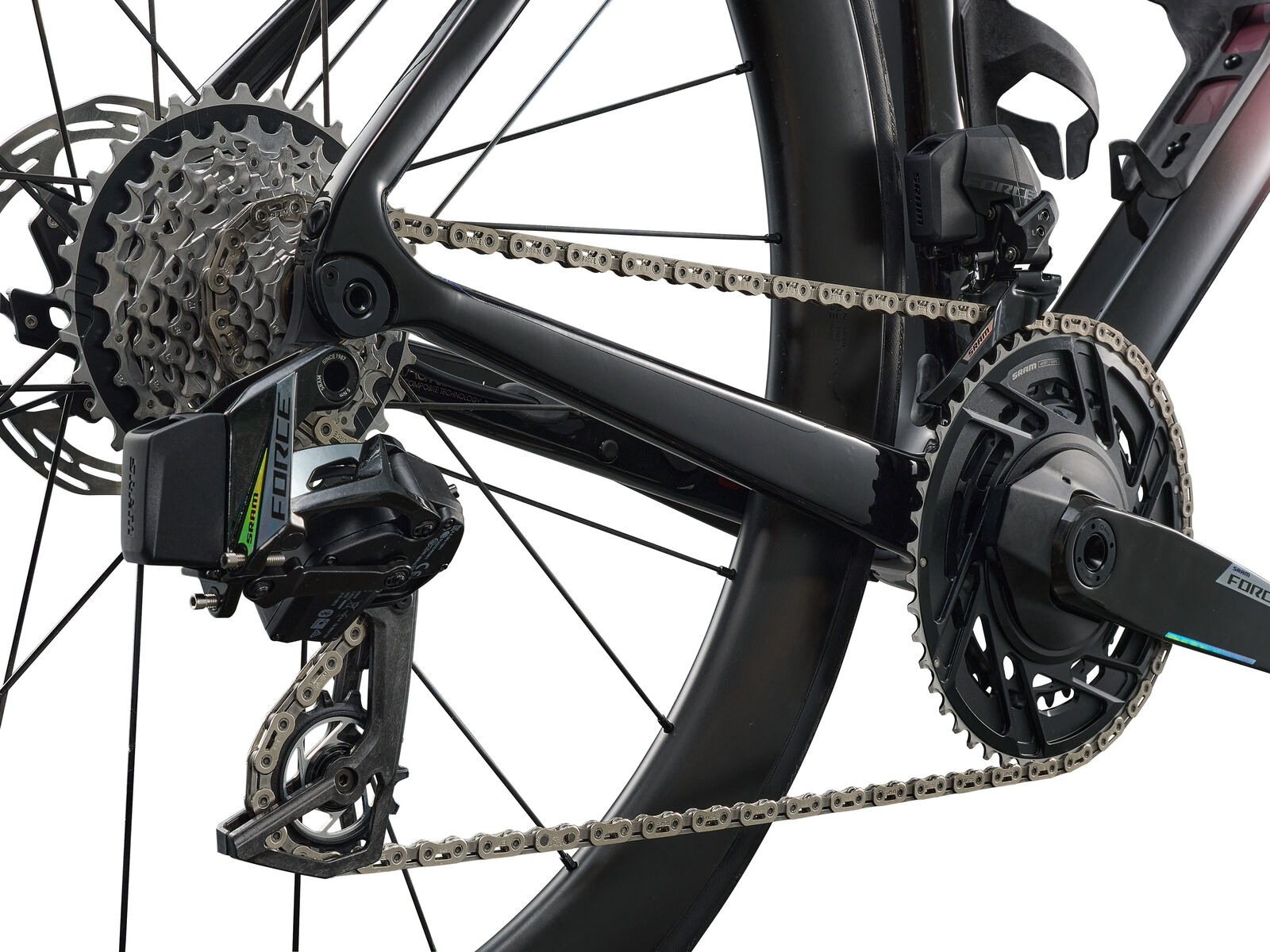 | Style | From the stage race breakaway to the final criterium lap, the all-new EnviLiv is made to be out front. We've redesigned our signature sprinter for optimized aerodynamic performance, greater stiffness-to-weight advantage, and maximum trophies.Advanced Composite Technology - Liv's High-Performance Grade raw carbon material is used to produce this frameset in our own composite factory. Using state-of-the-art materials and manufacturing techniques, Liv's Advanced-Grade Composite frames are designed to offer light weight and stiffness with optimal compliance. AeroSystem Shaping Technology - Tubing shapes engineered using computational fluid dynamics (CFD) and wind-tunnel data to optimize each tube shape for superior aerodynamic performance. OverDrive Aero - Found inside the head tube of the all-new EnviLiv range, the D-shaped fork steerer tube and corresponding spacers provide an extremely aerodynamic, easier to service system of internally routed brake and derailleur cables. Tubeless System - Engineered with proprietary Dynamic Balanced Lacing technology, this tubeless ready composite WheelSystem delivers superior efficiency, pinpoint control and comfort. PowerCore - A massively oversized bottom-bracket/chainstay area features a fully integrated, 86-millimeter wide bottom-bracket design (92-millimeterwide for off-road bikes). Asymmetric chainstays provide additional stiffness on the driveside and stability on the non-driveside. Specifications:Sizes XXS, XS, S, M, LColours Iron Rouge/Chrome Frame Advanced-grade composite, 12x142mm thru-axle, disc Fork Advanced SL-grade Composite, full-composite OverDrive Aero steerer, 12x100mm thru-axle, disc Shock Handlebar Liv Contact SLR Aero, 31.8mm, XXS: 360mm, XS: 360mm, S: 380mm, M: 400mm, L: 420mm Grips Liv Stratus Elite 2.0 Stem Giant Contact SL Aero, XXS: 80mm, XS: 80mm, S: 90mm, M: 100mm, L: 110mm Seatpost Giant Vector, composite, XXS: 350mm, XS: 350mm, S: 350mm, M: 350mm, L: 350mm Saddle Liv Alacra SL Shifters SRAM Force AXS E1 Front Derailleur SRAM Force AXS E1 Rear Derailleur SRAM Force AXS E1 Brakes SRAM Force AXS E1 hydraulic, SRAM PaceLine X rotors, [F]160mm, [R]140mm Brake Levers SRAM Force AXS E1 hydraulic Cassette SRAM Force E1, 12-speed, 10x33 Chain SRAM Force E1 Crankset SRAM Force E1 DUB, 35/48 with Quarq power meter, XXS: 160mm, XS: 165mm, S: 165mm, M: 170mm, L: 172.5mm Bottom Bracket SRAM DUB, press fit Rims Giant SLR 1 50 Carbon Disc WheelSystem, [F] 50mm, [R] 50mm Hubs [F] Giant Low Friction Hub, CenterLock, 12mm thru-axle, [R] Giant Low Friction Hub, 30T ratchet driver, CenterLock, 12mm thru-axle Spokes SAPIM CX-Ray Tyres CADEX Road Race GC, tubeless, 700x28c, folding Extras computer mount, two bottle cages, tubeless prepared, 32mm max tire size Max Tyre Clearance 32mm |