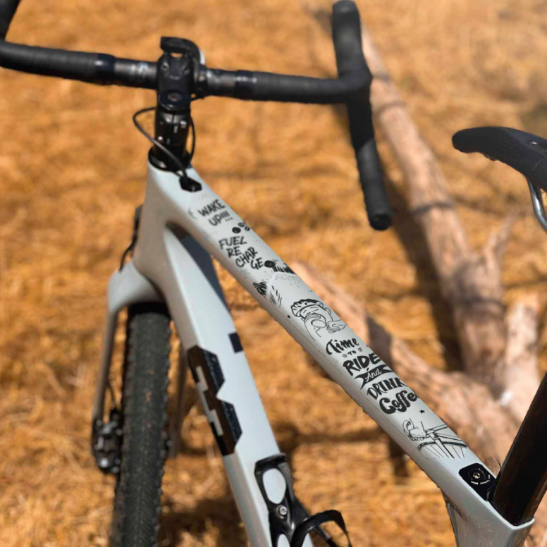 AMS Frame Guard for Gravel and Road bikes. An evolution of the successful mtb honeycomb frame guards but made with a new thinner/lighter material better suited for the speciï¬A?c protection needs of gravel and road bikes. Protects from cable rubbing, scratches and minor impacts, keeping your frame fresh.