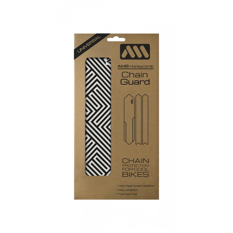 AMS Honeycomb CHAIN Guard is designed to protect chain and seat stays of XC, Gravel, Cross and Road bikes from impacts, scratches and chain rubbing. Made of an easy to install, premium quality, honeycomb adhesive PVC with such a quality it will last longer than your bike!