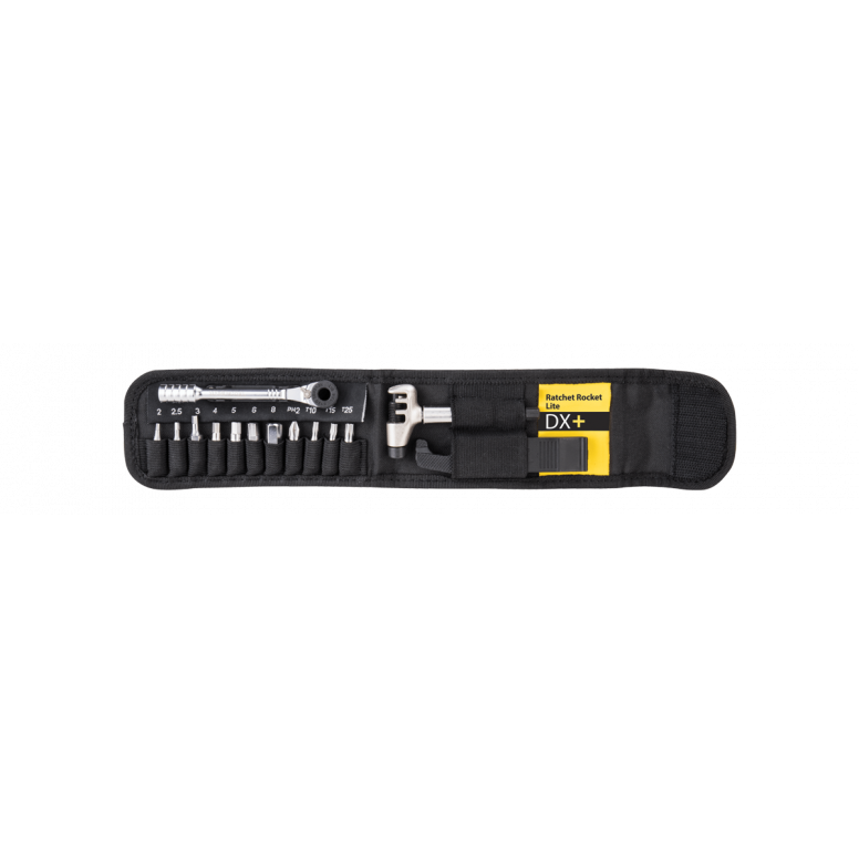 The latest addition to the Ratchet Rocket range. Includes a micro ratchet along with the most popular hardened steel tool bits and a compact chain tool allowing you to make adjustments or repair your bike while out cycling.