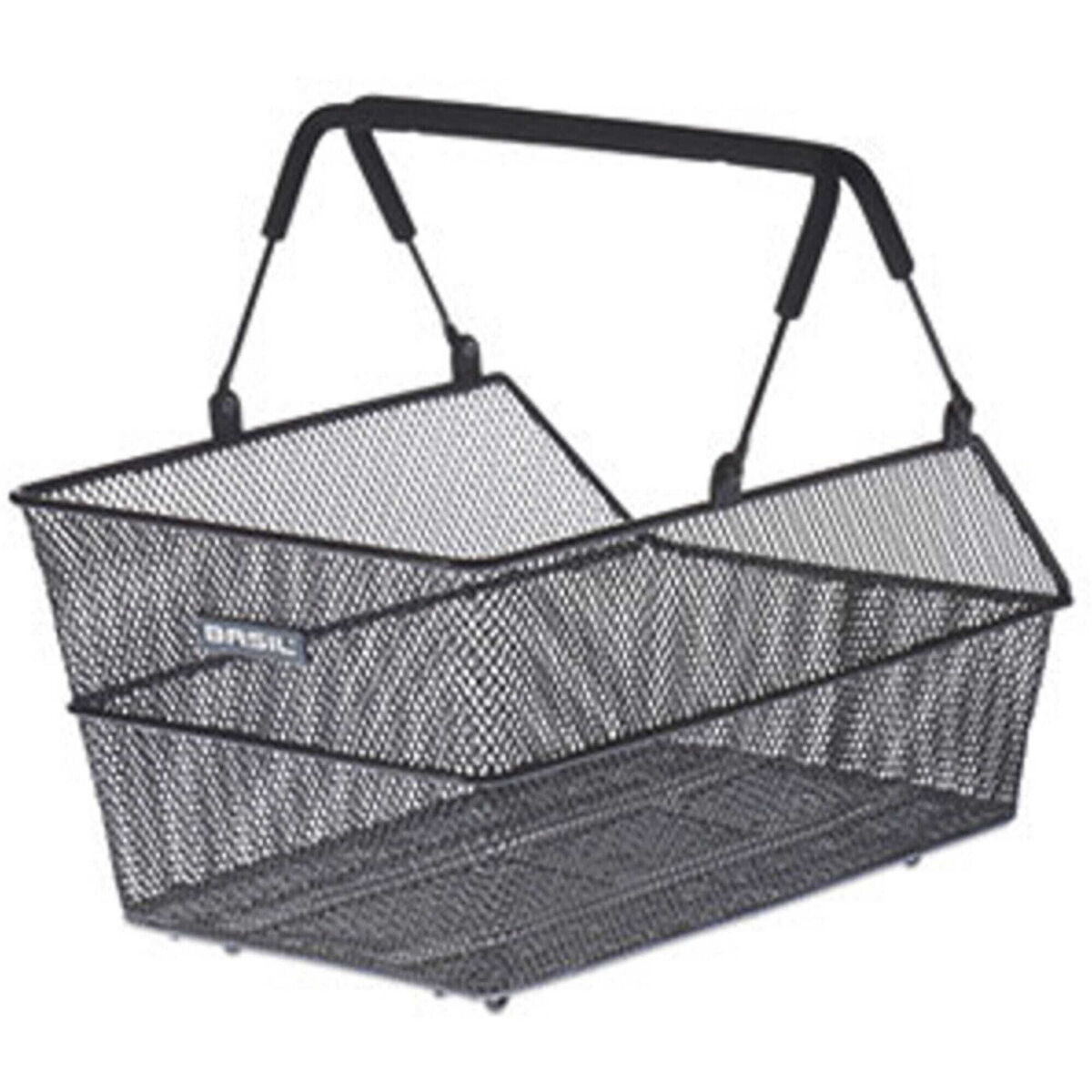 Basil Cento S Multi - bicycle basket - rear - small – black The ideal bicycle basket for your luggage carrier. This basket is not only stylish but also extremely practical, as it offers 20 litres of volume. You can easily put your laptop, school books, or groceries in it. Bike to the park with your basket full of goodies for a picnic, or hop on your bike to the market and fill your bicycle basket with fresh fruits and vegetables. Whatever you want to do, this bicycle basket offers you plenty of space. Beautiful & well-thought-out design This stylish bicycle basket is a real eye-catcher. The shape gives it a unique appeal. The material is fine-mesh steel, which makes the bicycle basket incredibly strong and resistant to wind and weather. The basket has a smaller hence more compact size. Easily mounted As the name Basil Multi-system suggests, this basket is included in Basil's Multi-system. The bottom of this basket is suitable for MIK, Racktime, and i-Rack/Carrymore plates (not included). In every case easy to attach and detach from the luggage carrier.