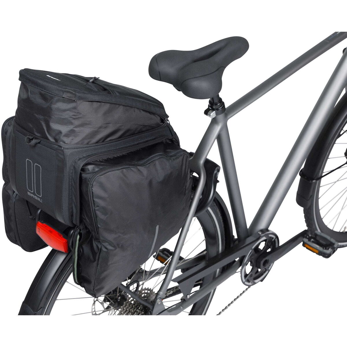The Basil Move luggage carrier bag makes your bicycle rides a lot easier. The bag for your luggage carrier combines style with functionality and is perfect for carrying your luggage. The Basil Move luggage carrier bag offers a spacious capacity of 10 to 26 litres. Thanks to the main compartment with an expansion feature, fold-out side pockets, and a carabiner for your keychain, you'll keep all your stuff organized and safely stored.