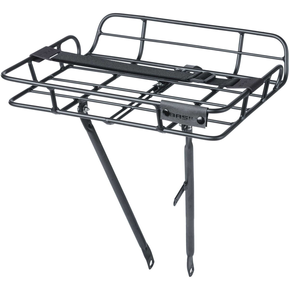 Basil Portland - front carrier - black The Basil Portland Front Carrier is a stylish choice, with an aluminium finish and vintage-style aesthetic. This carrier also features raised edges, preventing your items from tumbling free of your bike frame while you're in transit. The aluminium front carrier is available in matte black, ensuring an effortless complement with almost any frame. Looking for a more tasteful touch for the front of your bike? Then the Basil Portland Front Carrier is definitely for you. Designed to easily accommodate most bicycle bags and baskets, this carrier ensures your storage needs are well met while you ride. The maximum load of this carrier is 10 kilograms, with a design that will fit to bikes measuring between 26 and 28 inches, with installation via a crown mount. Support is provided by the front fork bracket (for 12-13 inch axles). In addition, you can also attach a bicycle lamp to this carrier, allowing you to enjoy your bike in all light conditions. Looking to whip your bike into shape? Choose the Basil Portland Front Carrier for the ideal accompaniment to your bicycle. Looking for more essential products for your favourite bike? Browse the complete collection of carriers, bike bags, baskets and more when you shop online with Basil. Features: