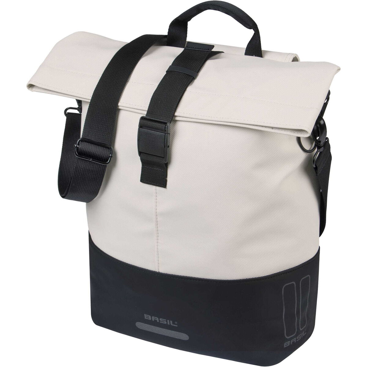 Convenience & functionality The bag offers ample space for everyday items, with a capacity of 14 to 16 litres. The main compartment is secured with a water-resistant fold-over closure and buckle. Inside, there's a zipped pocket for valuables. The removable shoulder strap and the handle make the bag easy to carry off the bike too. Reflective details and a loop for an LED light add extra safety while riding.