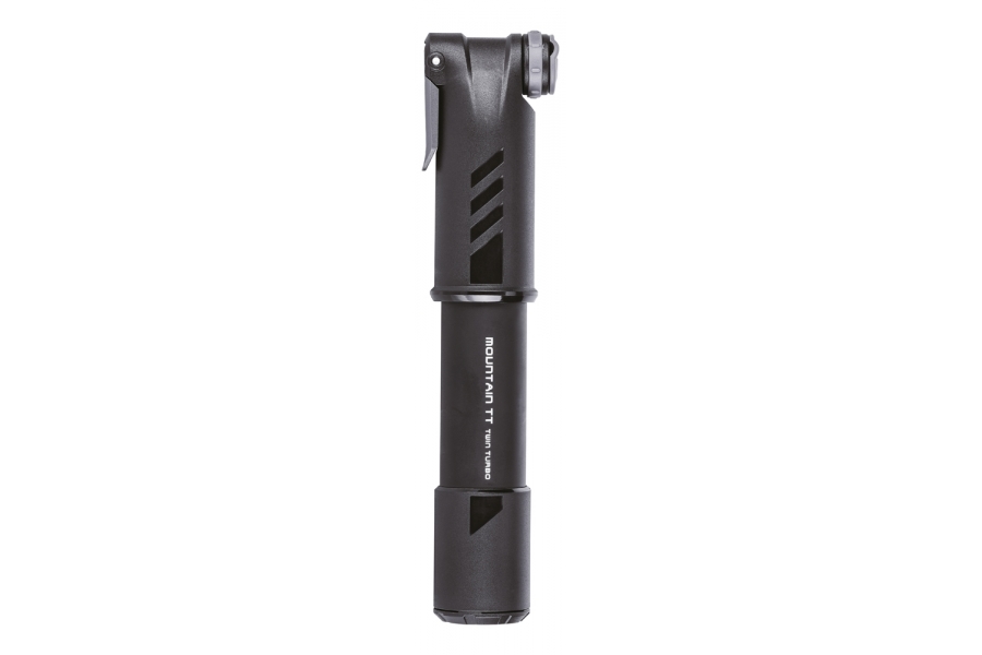 | Description | Mountain TT Twin Turbo pump quickly fills MTB tyres with it's large volume barrel, but also easily reaches higher pressures thanks to Twin Turbo technology. This technology uses both strokes to compress air to deliver high pressure output and saves time and effort. Integrated dust cap keeps pump head clean and thumb lock lever ensures air-tight seal.