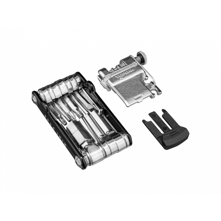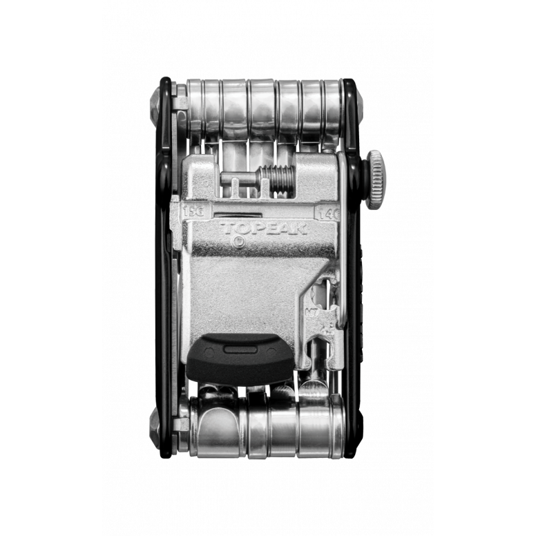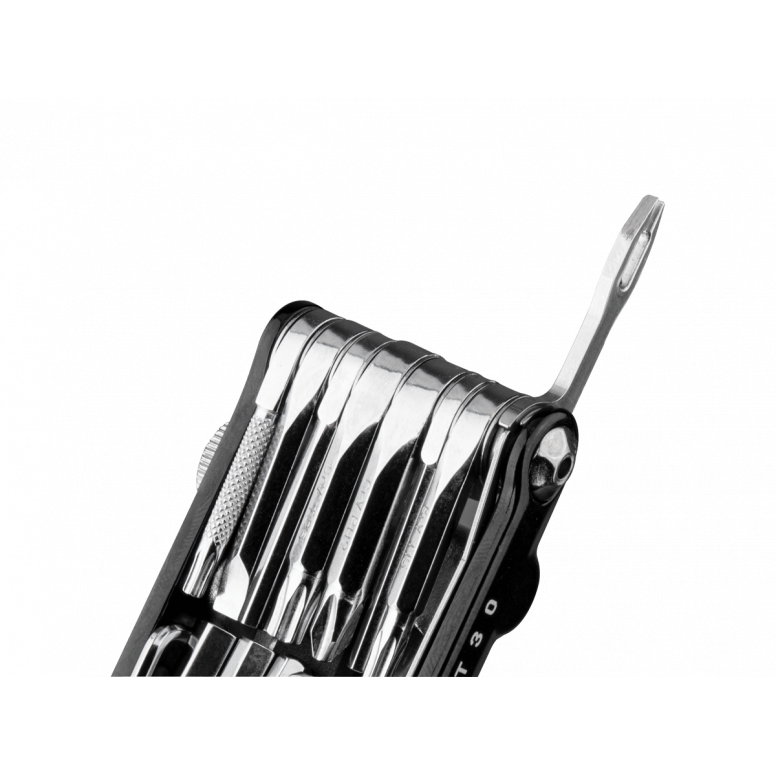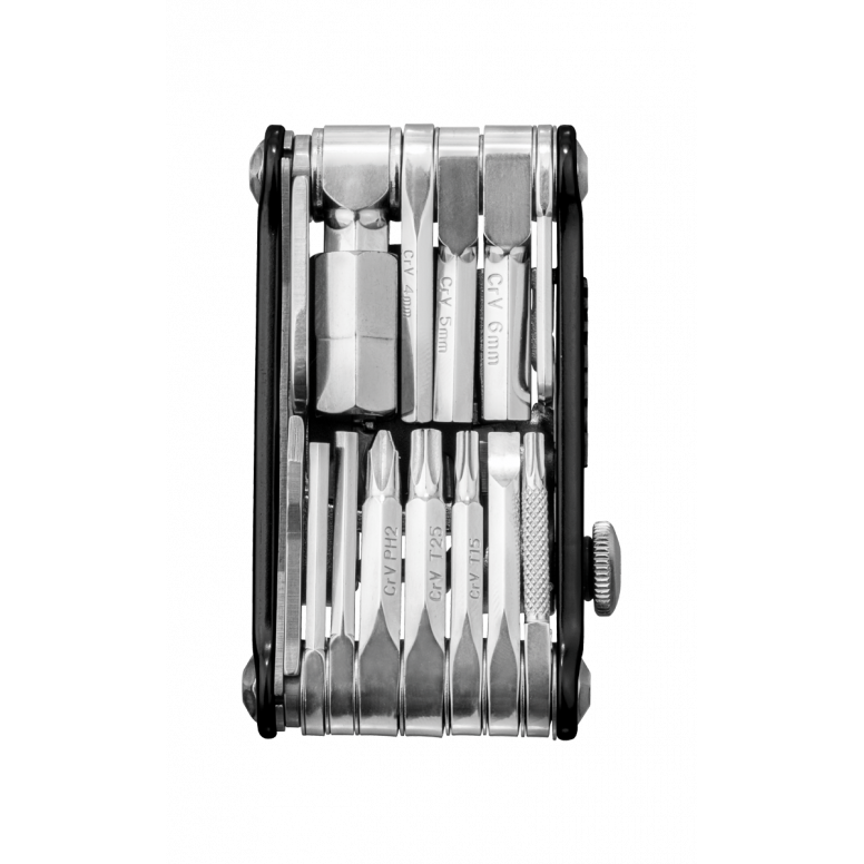 | Description | 30 function, pro-quality, precision mini tool with forged alloy body built to handle any road or trailside repair. Includes: