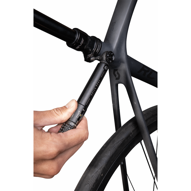 An incredibly compact torque wrench with adjustable torque value range of 2-10 Nm. A standard hex drive reversible ratcheting head with adjustable preset torque values allows you to tighten frame or component bolts safely and with confidence. Includes a five bit storage pen with visible window design letting you find the correct bit quickly and easily.