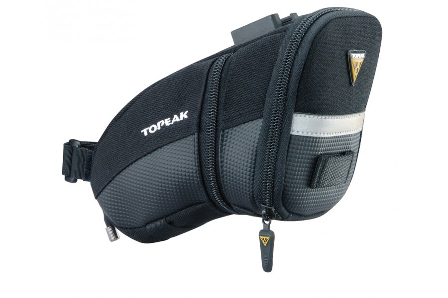 Aero shaped wedge pack with easy-to-use quick release or strap mounting system.