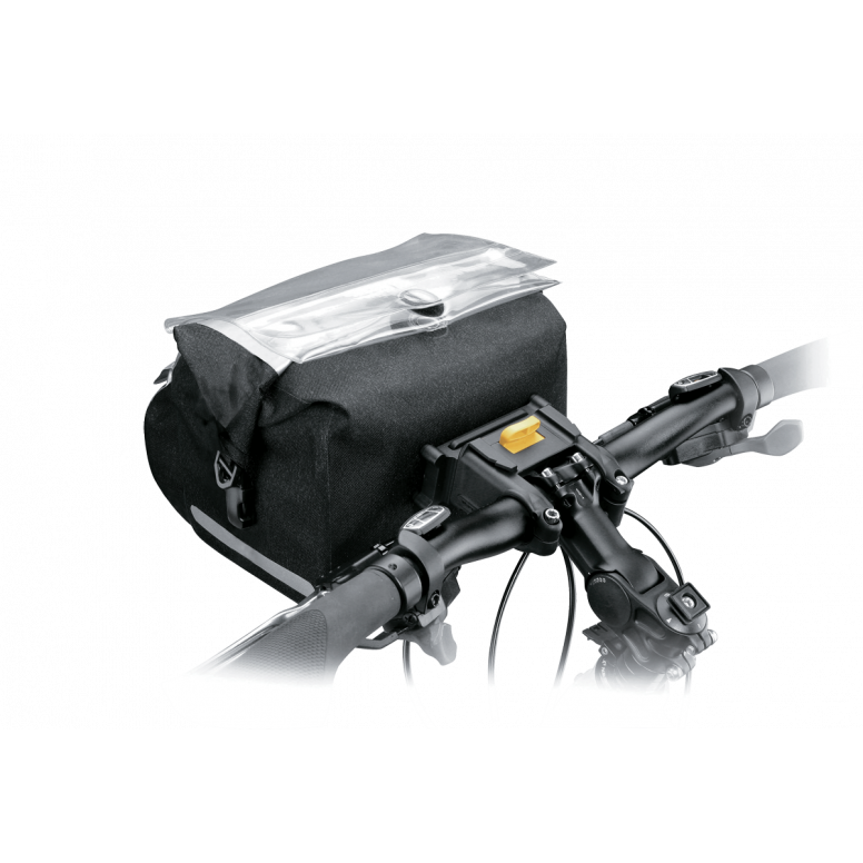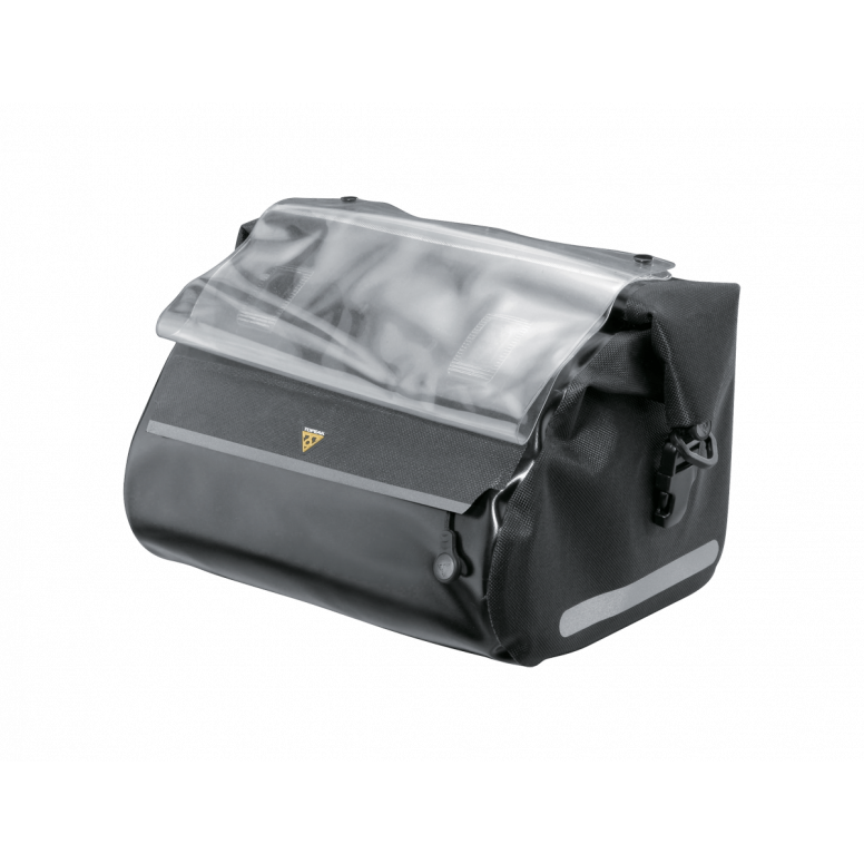 | Description | A full-featured handlebar bag using DryBag technology to keep the contents dry. A tough waterproof material is sonically welded and seam sealed roll top closure with waterproof zippers also keep the elements at bay. Rigid EVA foam and divided main compartment provide shape and insulation against road shock and vibration. Quick-release clamp, carrying handle and shoulder strap for off-bike use.