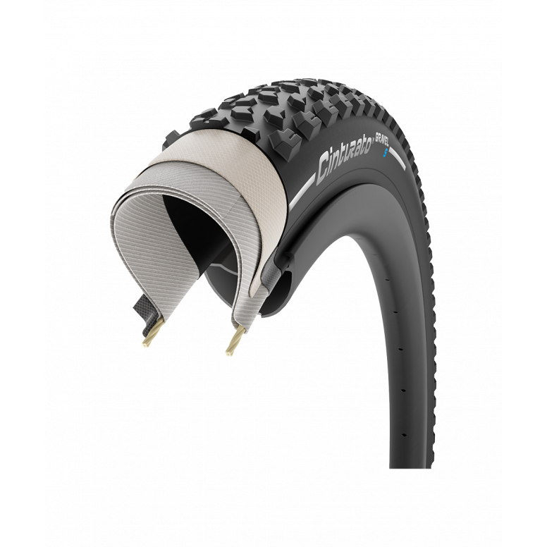 | Description | Grip, Control and Puncture Resistance. Cinturatoâ„¢ Gravel S is the gravel tyre for soft and muddy terrain, it is a versatile model that delivers a safe cycling experience in adverse weather conditions and on technical tracks. Cinturatoâ„¢ Gravel S in the suggested model for those looking for a reliable tyre which is easy to control and safe in every condition. Grip and safety are prioritized rather than the pure speed of racing-specific models. The tread design of Cinturatoâ„¢ Gravel S features the main technical solutions adopted for our best soft terrain-specific mountain bike and motocross tyres: the knobs are tall and widely spaced, the central section points towards the rolling direction so that speed is still good enough for gravel riding while the lateral section is more aggressive in order to penetrate the terrain and generate high grip in every condition. The properties of the new SpeedGRIP Compound formulation are tailored for all weather conditions, regardless of whether the terrain is dry or wet. The new formulation retains the same polymer matrix as the specific mountain bike SmartGRIP Compound, improving the rolling efficiency Coupling a reinforced casing construction, featuring a woven fabric bead-to-bead layer with a tubeless-ready Aramid bead optimised for wide, modern rims, Cinturatoâ„¢ Gravel S offers extremely high levels of puncture protection and a new level of performance in terms of rolling resistance and grip, as well as great reliability - a core element of Pirelli's Cinturatoâ„¢ trademark. Tech Highlights: