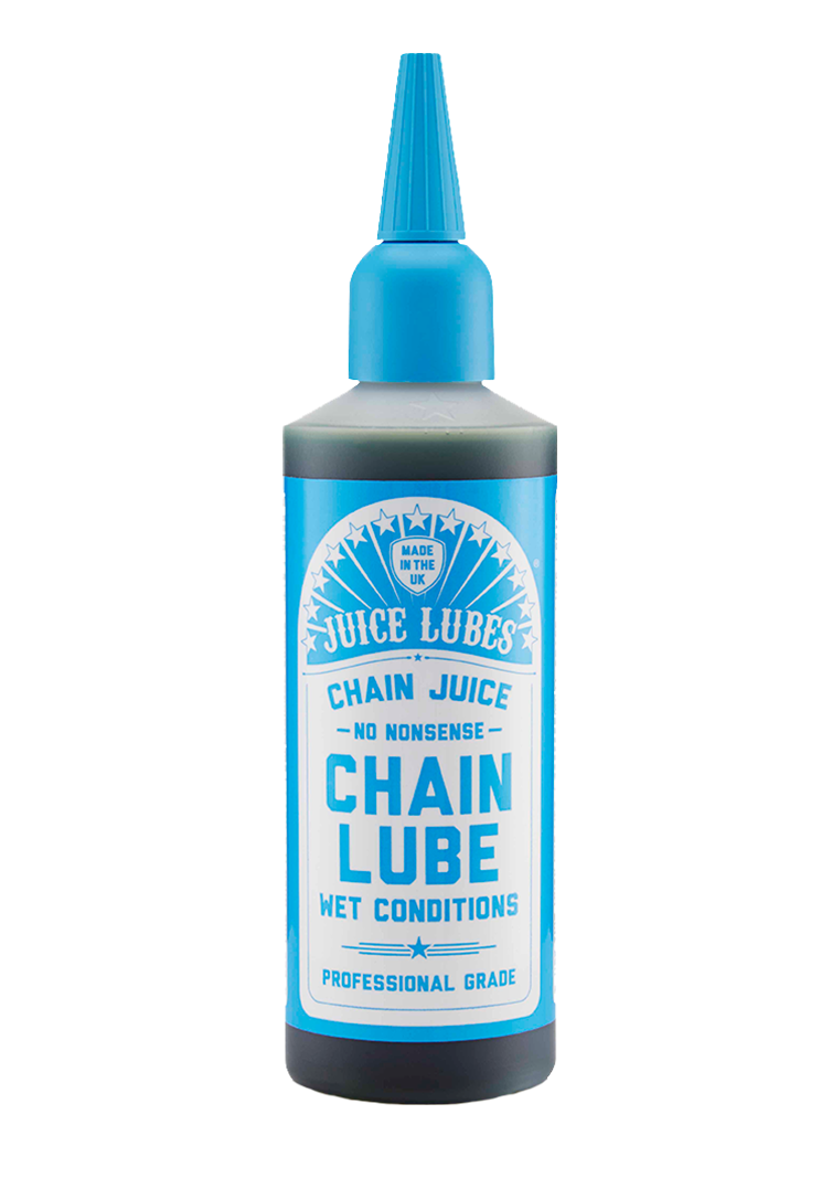 Description Chain Juice Wet - For Wet Riding Conditions Chain Juice Wet is a wet conditions chain lube which does what a wet lube should - it stays on your chain and keeps lubricating in wet conditions. Simple. You get a handy twist top flow regulator cap for easy and precise application which also removes the problem of ever losing the lid!