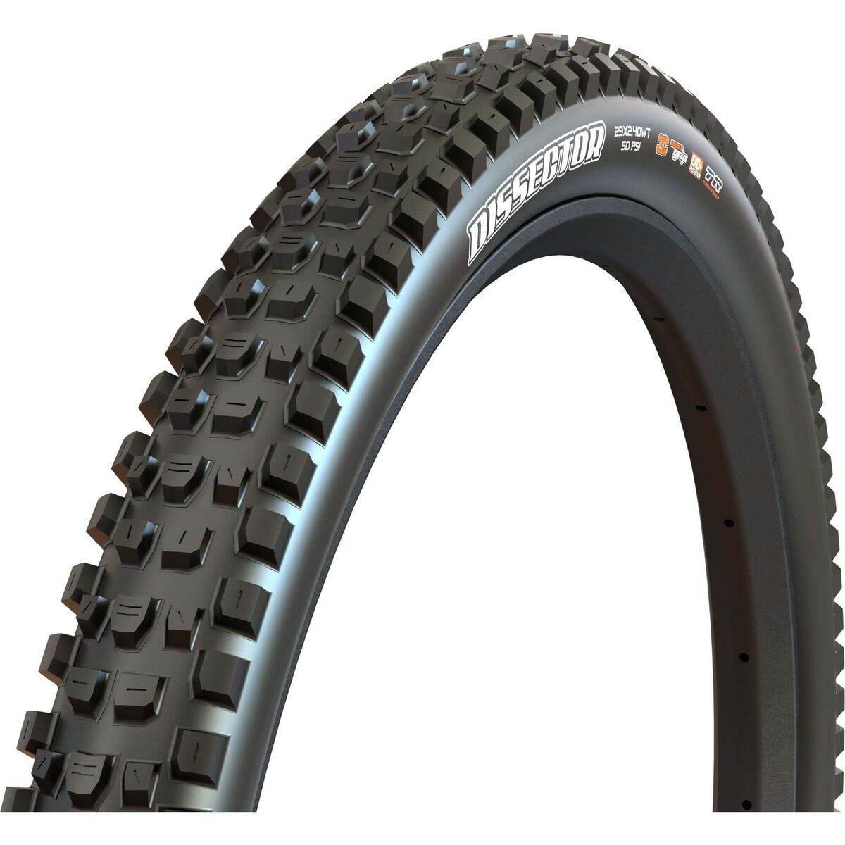 | Description | Dissector G2 29 X 2.4 2x120 TPI Folding 3C MaxxGrip DoubleDown Tubeless Tyre " The Maxxis Dissector returns with a host of upgrades that improve performance across the board. Most notably, the side knobs have been completely redesigned with a larger footprint and reworked sipes, boosting stability and predictability in cornersespecially on hard terrain. The new shape resists deflection under load, increasing both durability and control. Side knob engagement is also quicker, giving riders a more confident, planted feel in turns.The center tread retains the familiar 2-3-2 layout, but the center 3 has been split into individual knobs for improved braking traction and better terrain conformity. Transition knobs have been pushed outward, creating a smoother, more consistent feel as the tyre leans over. Like the side knobs, the center tread also benefits from revised sipes for enhanced grip and longevity. These updates make the Dissector an even more versatile option for short- to mid-travel trail bikes. It excels as a front tyre on bikes with 130-140mm of travel, especially when paired with a fast-rolling rear like the Forekaster or Rekon. On longer travel bikes (150mm+), it serves as a fast, confident rear tyre in dry conditions