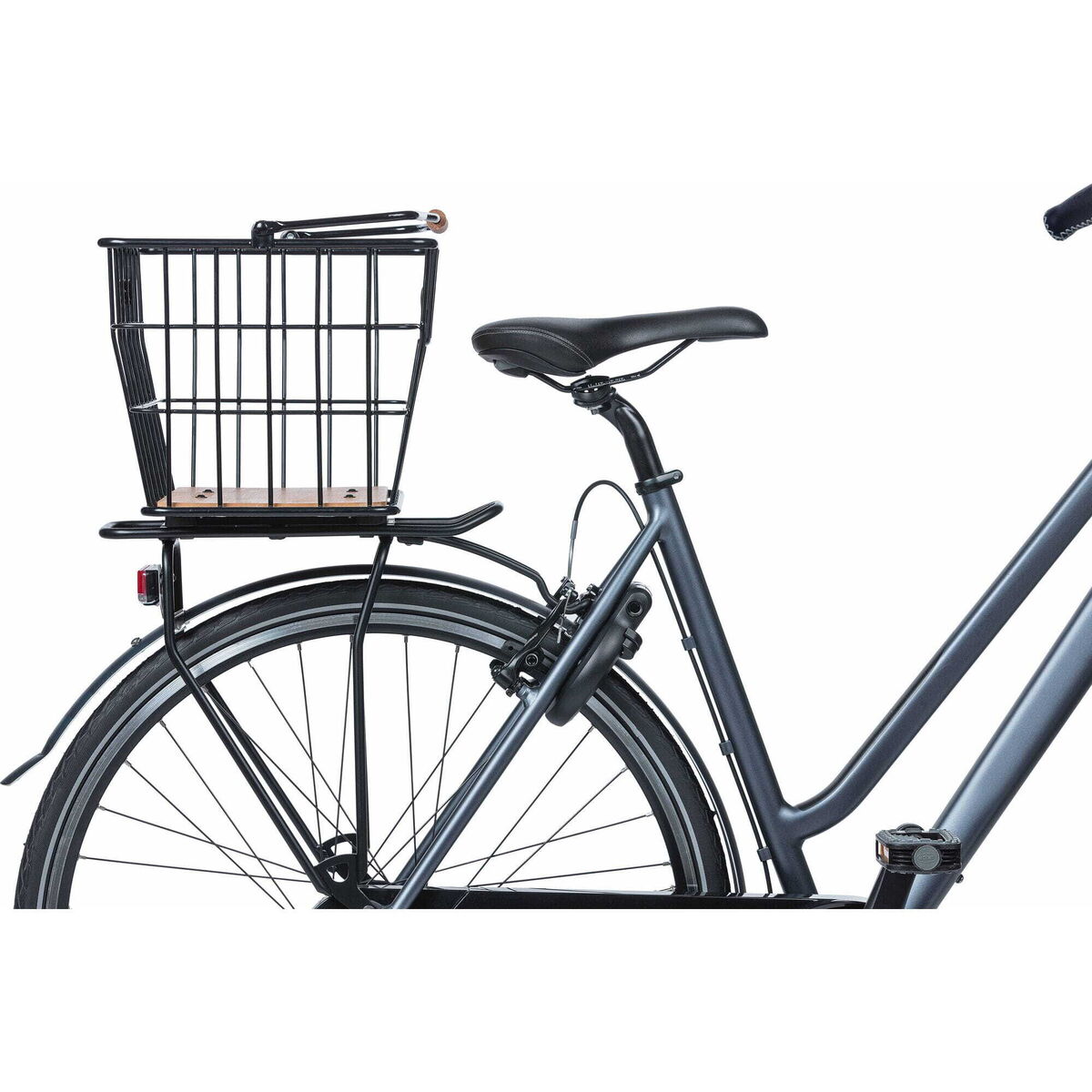 Basil Nordland - bicycle basket MIK - front and/or rear - black/natural Looking for a modern bike basket? Then the Basil Nordland MIK bike basket is for you! The removable basket is made of durable steel in combination with a bamboo bottom. With a capacity of 23 litres, the basket is ideal for doing your daily shopping and comes in handy during your weekly visit to the market. In addition, it can easily fit your handbag. The basket is easy to attach thanks to the pre-assembled MIK adapter plate. With this adapter plate, you simply click the basket into your luggage carrier or front carrier with MIK profiles or a MIK luggage carrier plate. If you'd like to take the basket into a shop, you can just as easily click the basket off again. It's also easy to take with you thanks to the handle made of rubber and cork. The MIK adapter plate fits on many racks and carriers, women's, men's and e-bikes. Features: