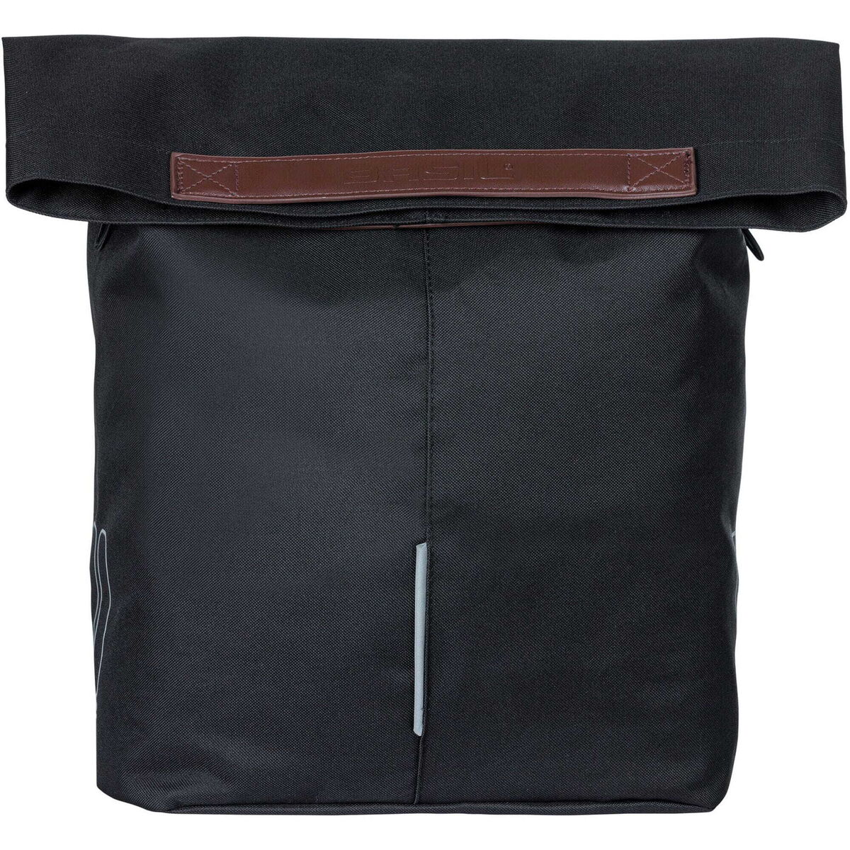 Basil City - bicycle shopper - 14-16 litre - black The Basil City bicycle shopper is the bag for the city. Wherever you go, work, friends, the market, or for a nice drink on a terrace, this bicycle shopper is the bag to take with you. This stylish black shopper bag is the perfect size, holding 14 to 16 litres. Not too big, but big enough for all your essentials or groceries. The bag has a folding closure with a magnet, so the bag can always be securely closed, and your belongings remain safe. With the detachable shoulder strap, you can easily carry this bag anywhere. The reflective details on all sides of the bag make you more visible to other road users. You can also attach extra LED lights to your bag. So you always come home safe. You can easily attach the bag to the luggage carrier of your bicycle with the Hook-On system. The bag is designed in such a way that the hooks are neatly hidden; hence no one will see that your shoulder bag is also a pannier. This shopper is your new friend for the road. Features: