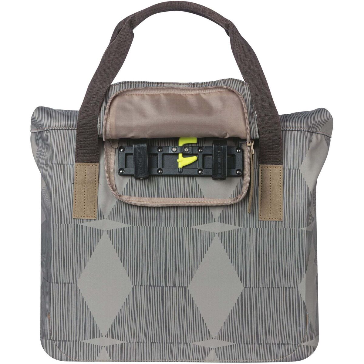 E stands for Elegant and Eco for this shopper bag. The bag is chateau taupe coloured and has a capacity of 20 to 26 litres. This makes the bicycle shopper ideal for a visit to the market or the bookstore. The inner zipper pocket is ideal for storing your wallet, keys, or other valuables.