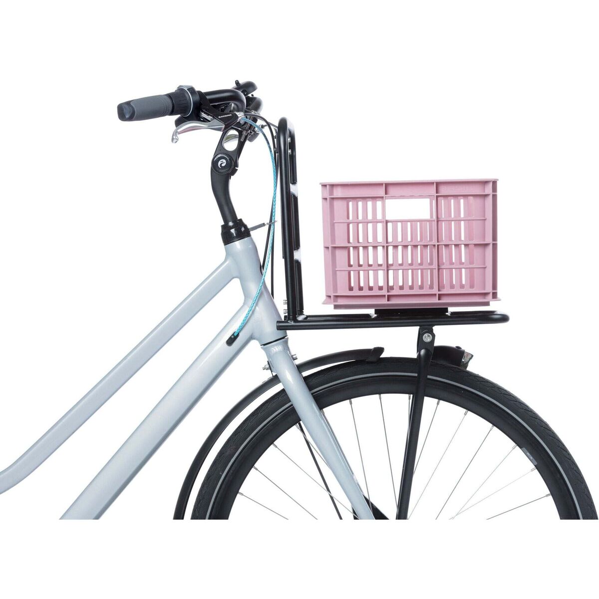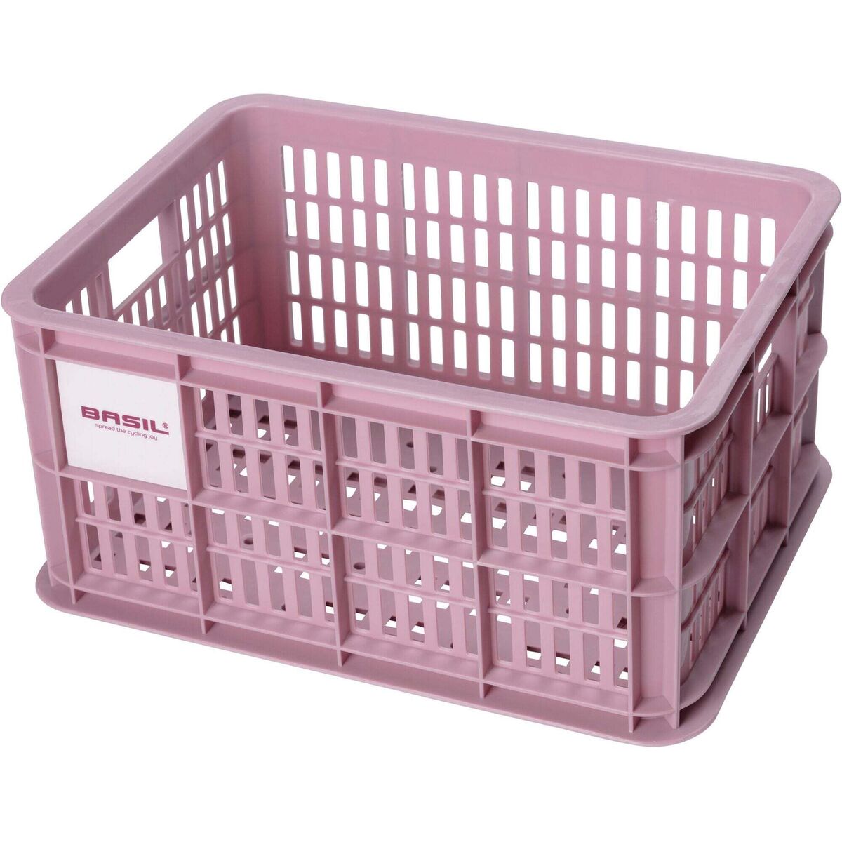 Basil bicycle crate S - small - 17.5 litres - pink Safely on the go No more heavy shopping bags on your handlebars or school bags on your back. With the trendy Basil bicycle crate, you safely carry your luggage. The S crate is compact and therefore also suitable for children's bikes. The crate features a contrasting crate clip to make your bike stand out. Handy in crowded bicycle parking lots. Just snap the clip onto the crate at any point, and you're good to go! Sustainable choice With the bicycle crate from Basil, you make a sustainable choice. The crate is made of post-consumer waste, also called regranulate. The recycled plastic also makes the crate extra strong. Did you know that the production takes place in the Netherlands? So better for the environment! Easy and quick to mount The crate can be mounted in several ways. For fixed mounting, you can use the Basil Crate mounting set. Do you want to take the crate with you, for example because you have groceries or because your crate would otherwise be stolen? Then choose to mount it with an adapter plate like the MIK system. MIK = click & GO! You can buy the mounting system separately. We thought of you That's why the Basil bicycle crate offers: - A capacity of 17.5 liters; hence your heavy shopping or school bag no longer needs to hang on the handlebars.