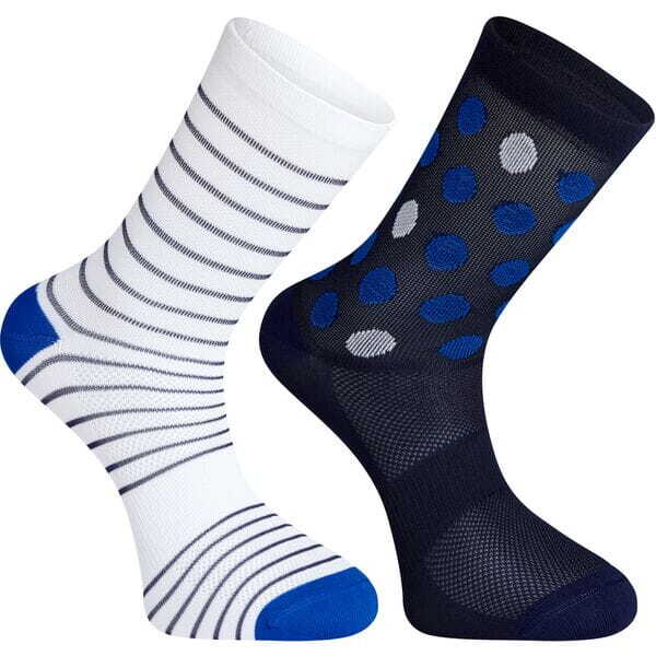 MADISON Sportive mid sock twin pack - blue spot and white stripe