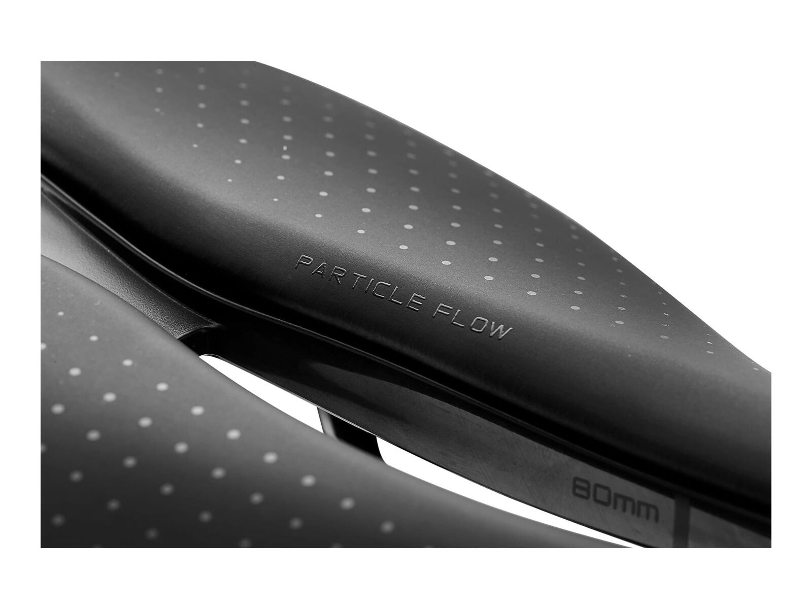 Particle Flow - A tailor-made feel is now achievable through Particle Flow Technology, which are free-flowing particles are inserted into two separate pockets within the saddle structure. The particles mold to the rider's unique pelvic contact condition, reducing pressure points by more than 20 percent and distributing pressure across a broader contact area. The result is optimal performance through superior comfort and support.