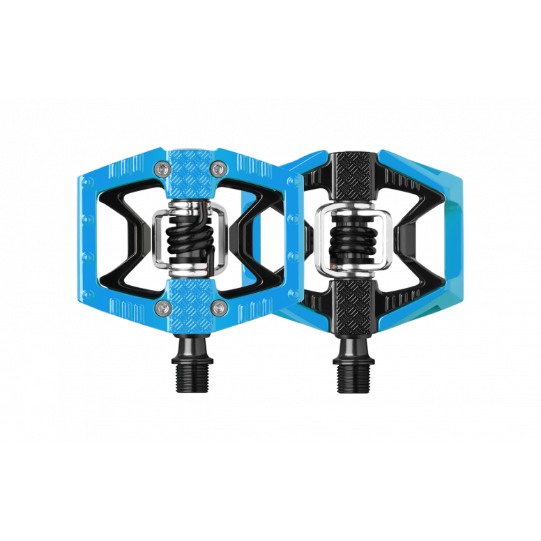 Choose to ride flat or clipped in. The new double shot is crankbrothers hybrid pedal designed half flat / half clip-in. - Moulded traction pins and diamond plate area provide grip and support.Â