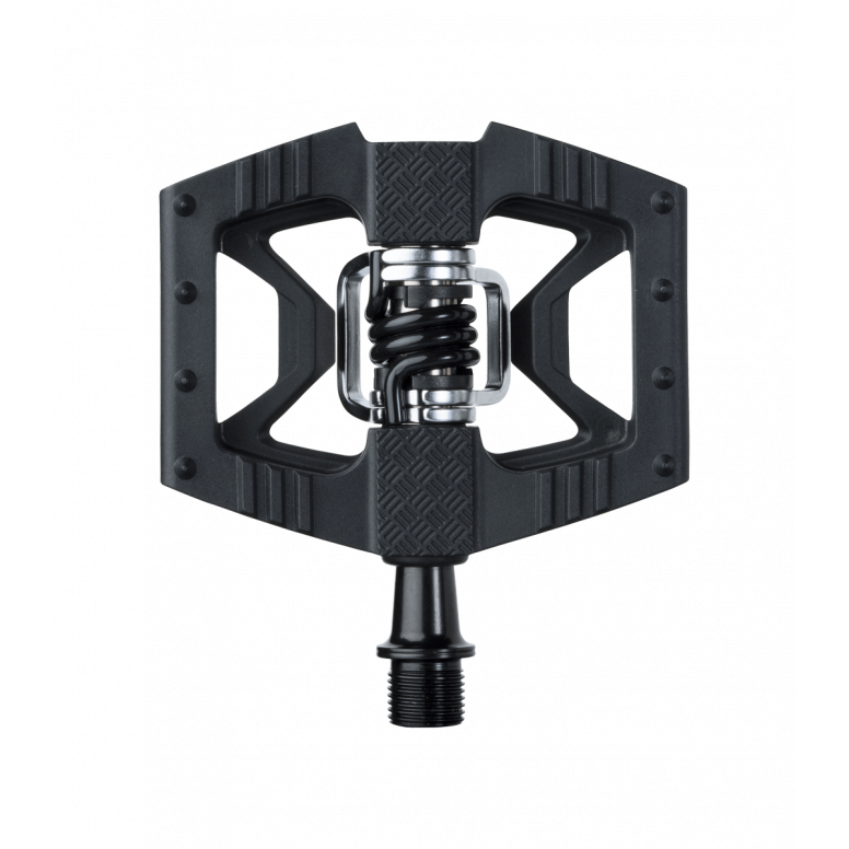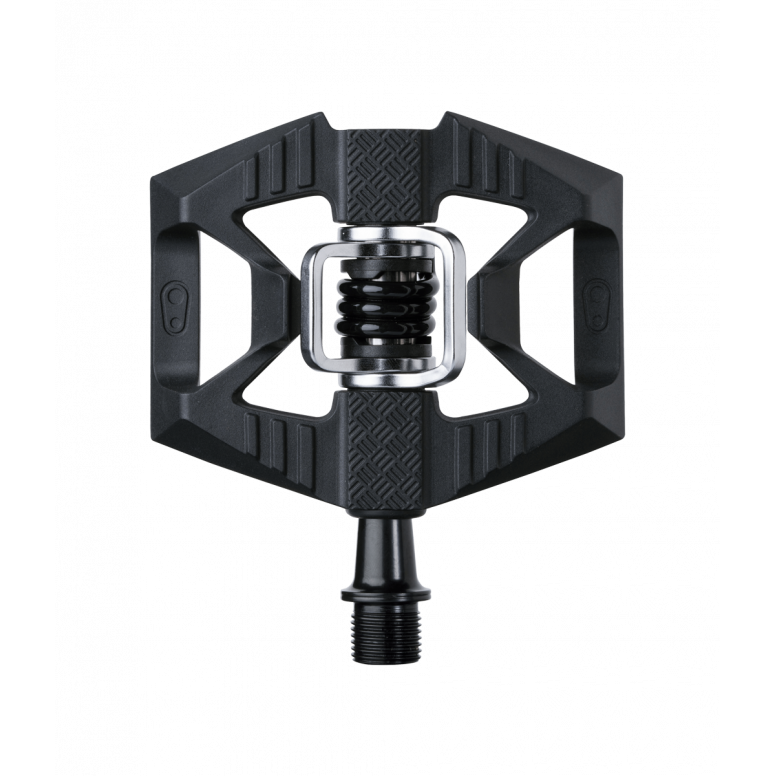 Choose to ride flat or clipped in. The new double shot is crankbrothers hybrid pedal designed half flat / half clip-in. - Moulded traction pins and diamond plate area provide grip and support.