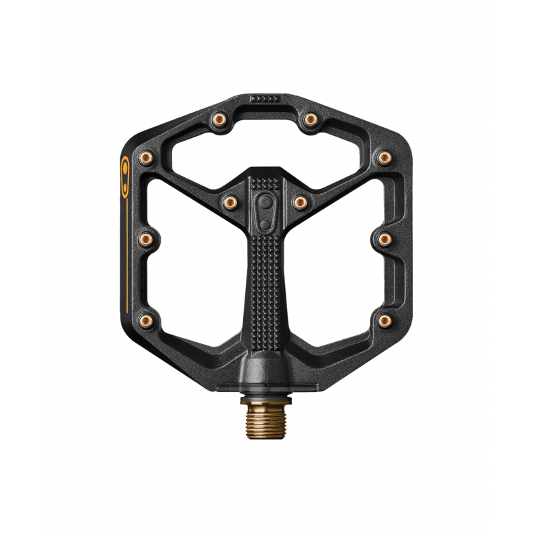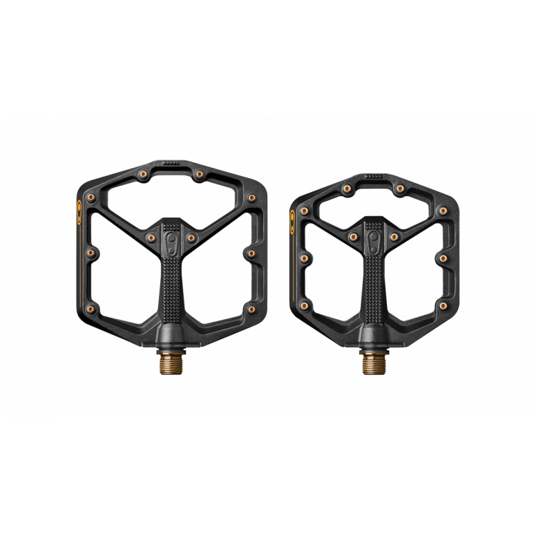 | Description | The flat pedal from crankbrothers is engineered to provide the optimal interface between shoe and pedal. The level 11 pedal is the top of the range crankbrothers flat pedal with a slimline, thin, concave profile, adjustable pins for grip and a titanium axle. The outsole profiles of the top mountain bike show brands were analysed and the data used to create two distinct surface areas to optimise shoe/pedal contact across all of these different models. The small is designed for EU shoe sizes from 37-43, and 43-49 for large. Once the optimal sizes had been established the features required for the ideal flat pedal were also incorporated.