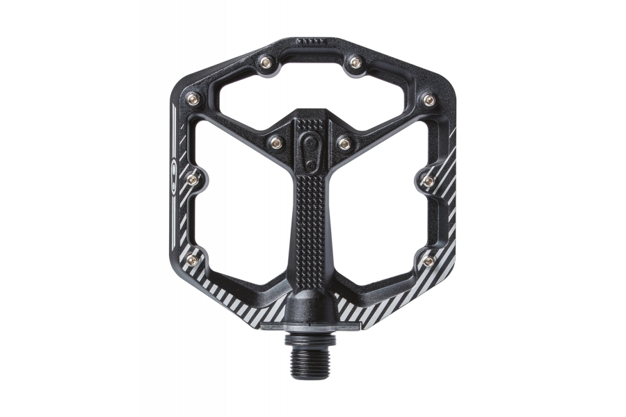 | Description | The flat pedal from crankbrothers is engineered to provide the optimal interface between shoe and pedal. The 13mm external and 11mm internal thickness on the level 7 stamp provide a low profile concave pedal body that your feet sit into. Adjustable pins allow the rider to fine tune the feel. The outsole profiles of the top mountain bike show brands were analysed and the data used to create two distinct surface areas to optimise shoe/pedal contact across all of these different models. The small is designed for EU shoe sizes from 37-43, and 43-49 for large. Once the optimal sizes had been established the features required for the ideal flat pedal were also incorporated.