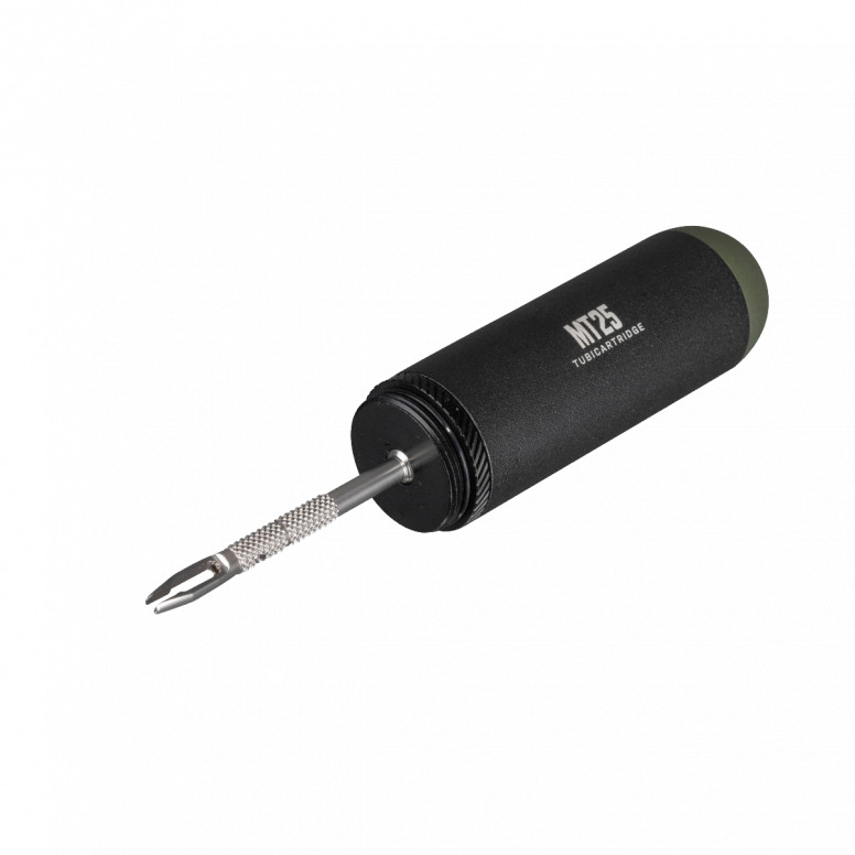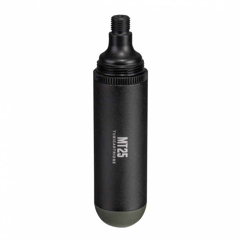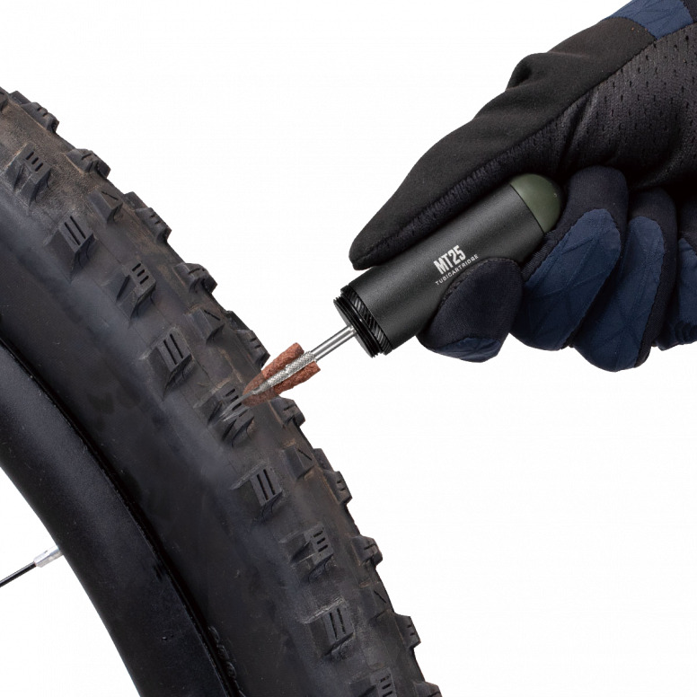 | Description | A MTB tubeless tire repair kit stored compactly in a CO2 cartridge style pod used alone for tire repairs or additionally with CO2 inflator for tire inflation.