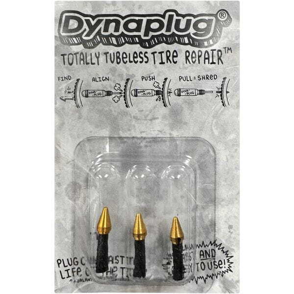• Dynaplug is the fastest, easiest and all-round best way to repair a tubeless tyre mid-ride. When needed, just remove whatever caused the puncture, firmly push the novel insertion tube straight into the hole and extract the tool depositing the repair plug in the tyre, done!